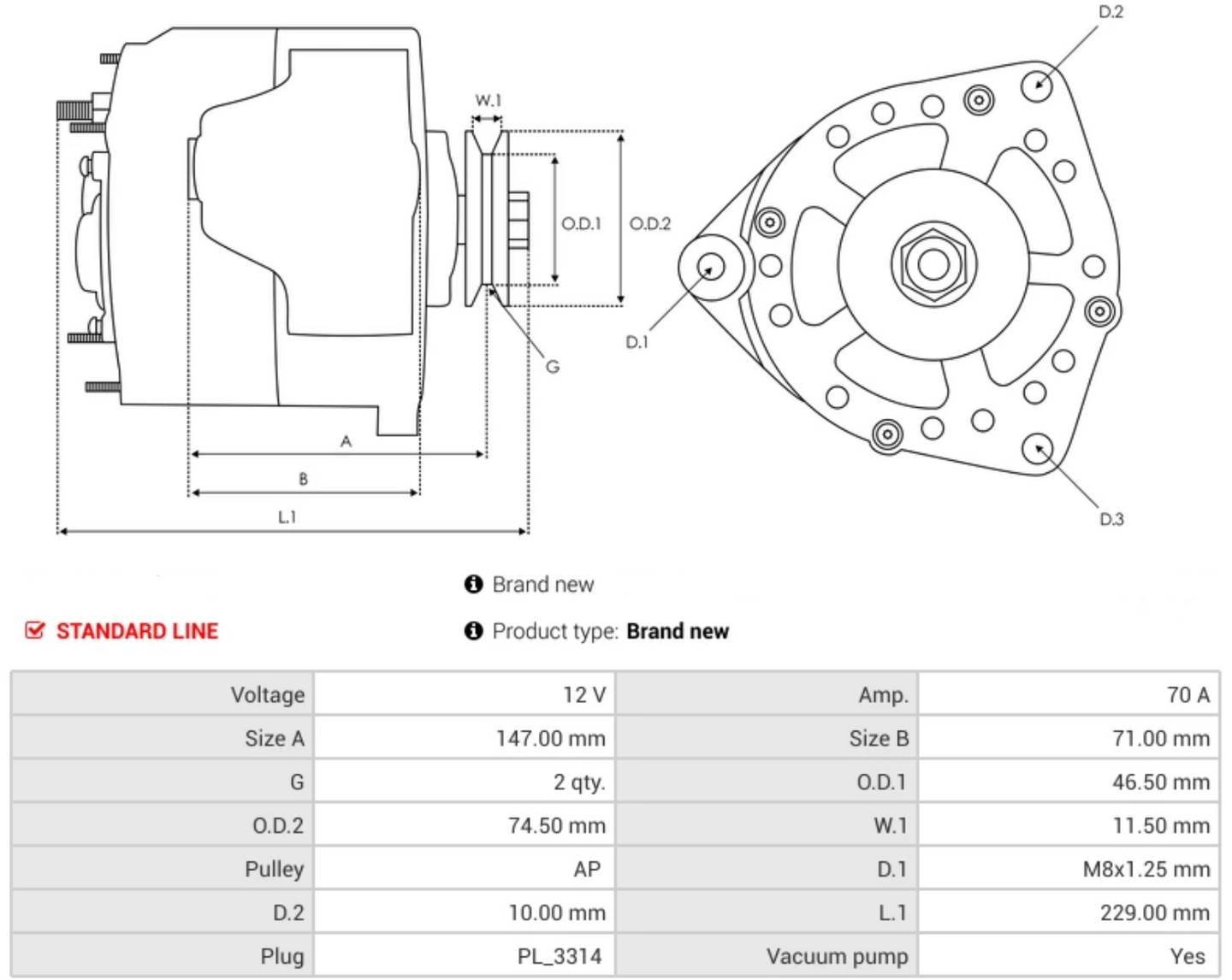 12V 対応の 70A オルタネーターを必要とする車両で信頼性の高い動作を実現するように設計されています。ご注文前に車両の仕様を確認するか、適合確認についてお問い合わせください。